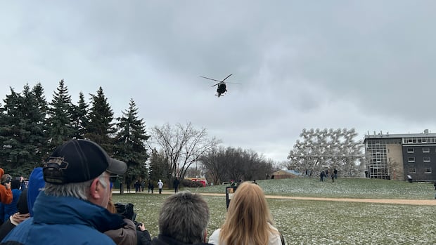 Grey Cup arrives by helicopter at The Forks